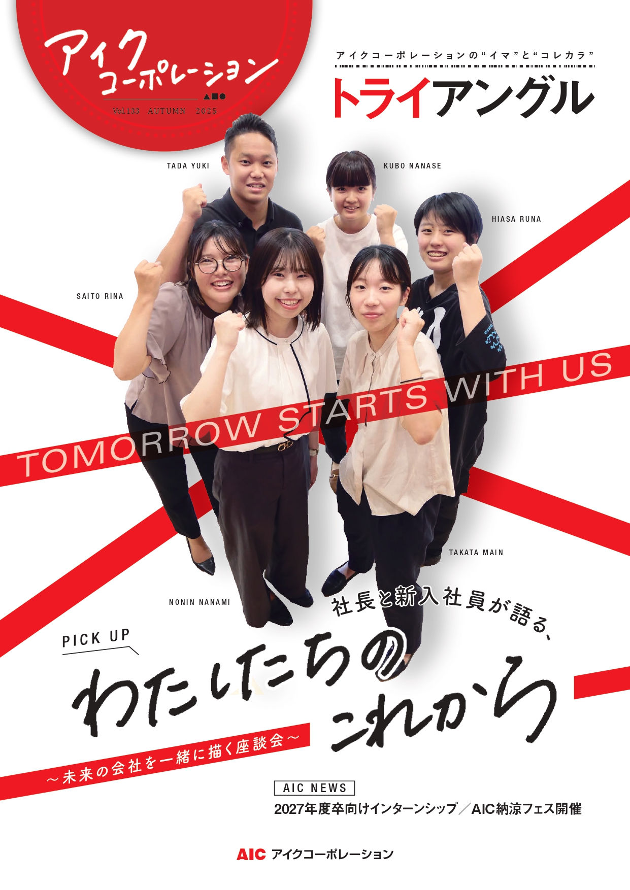 広報誌「トライアングル」秋号を発行しました 「トライアングル秋号(第133号)が発行となり、関係者の皆様に個別にてお届けしております。 今後ともアイクコーポレーションをよろしくお願いいたします。 【発行情報】トライアングル 季刊発行 2025年10月10日 第133号発刊 お手元に届かない場合は、以下までお問い合わせください ㈱アイクコーポレーション 総務部 e-mail:info@aic-co.jp