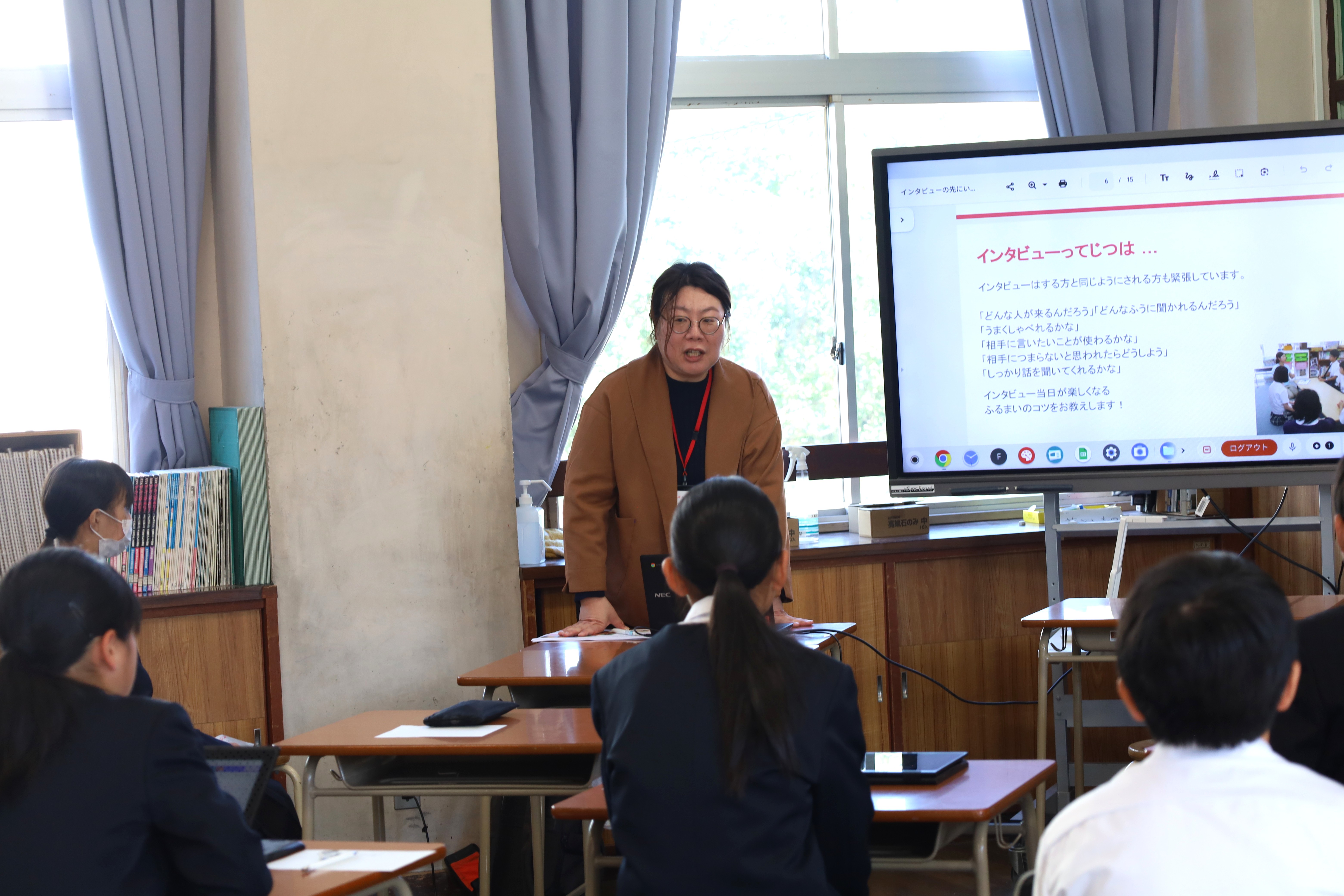 10月29日(水)新居浜市立角野中学校のふるさと学習において、当社社員が「インタビューの仕方」をテーマに講師として出演しました。